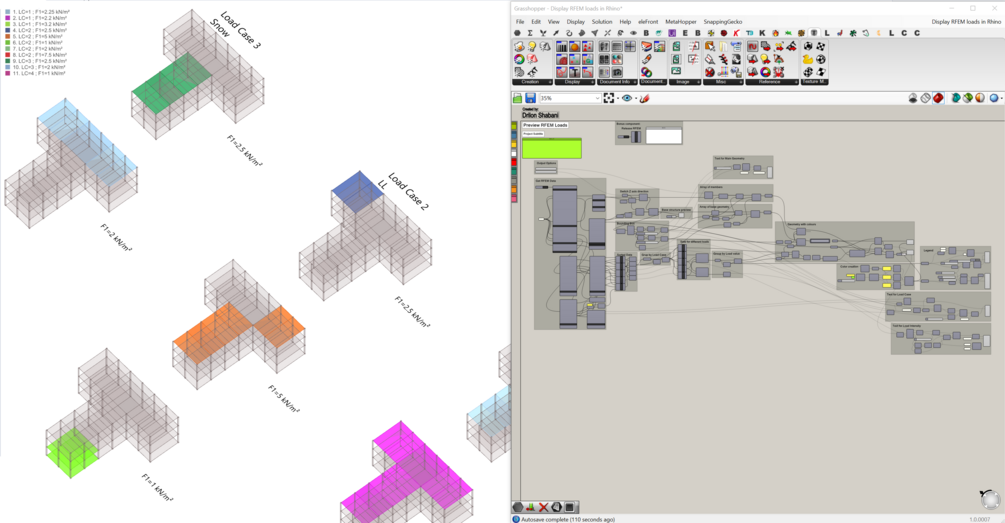 Grasshopper file which will import an RFEM model, group and then preview surface loads.